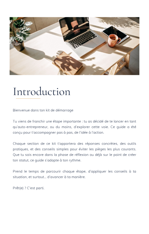 Le Kit Auto-Entrepreneur Essentiel a รฉtรฉ conรงu pour tโaccompagner pas ร pas dans la crรฉation et la gestion de ta micro-entreprise.